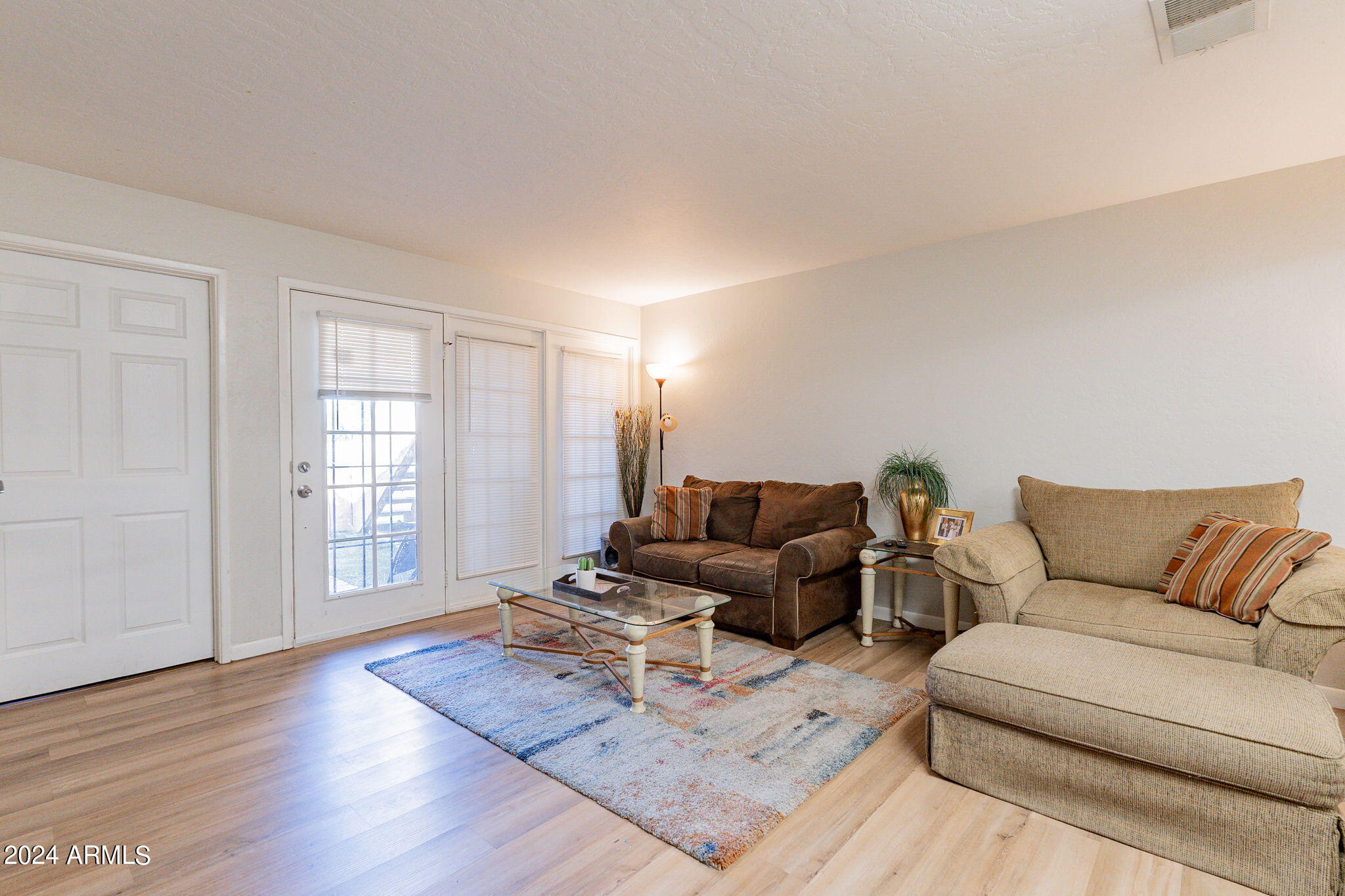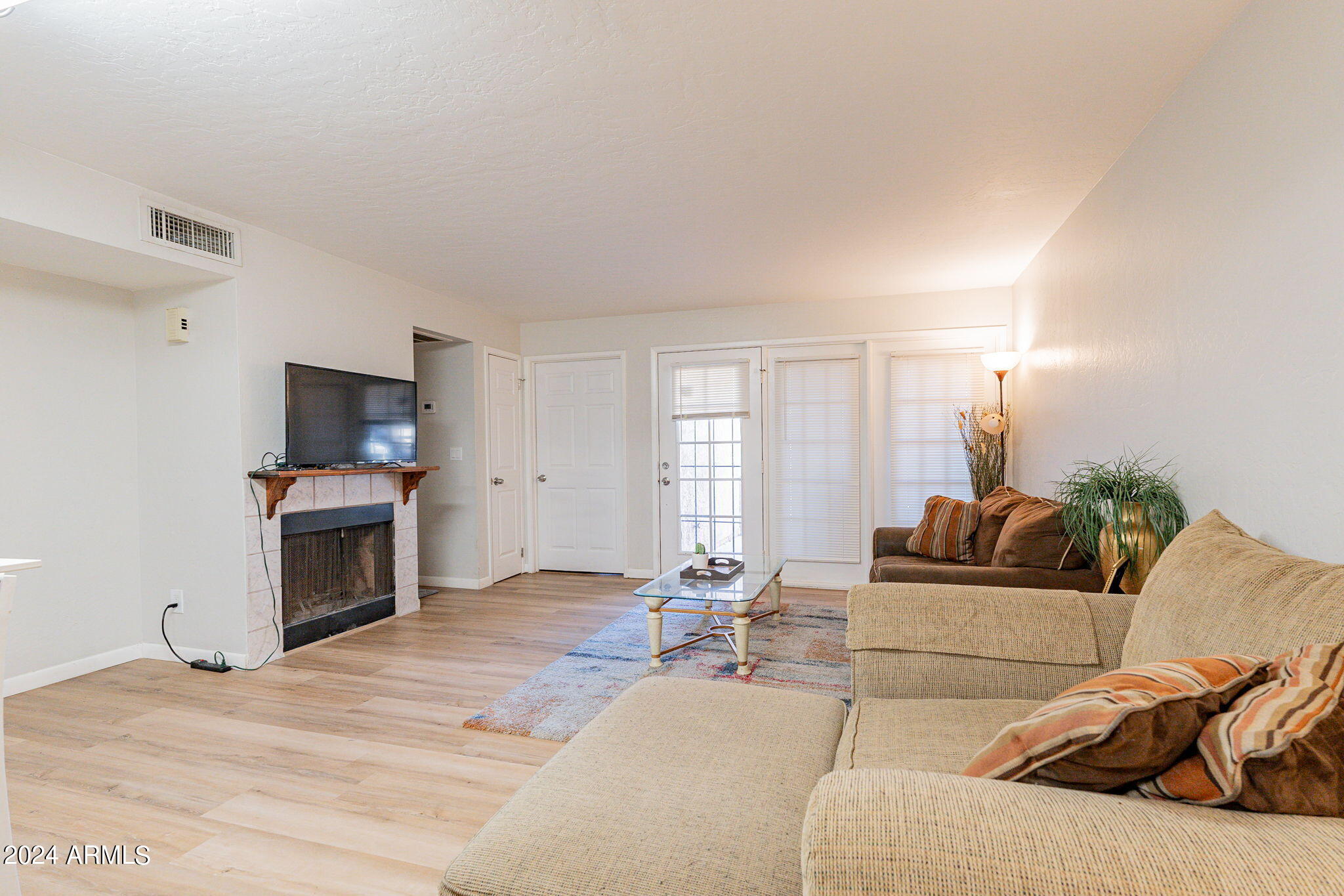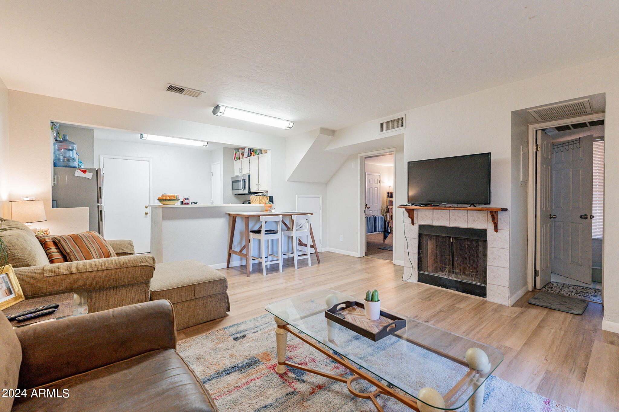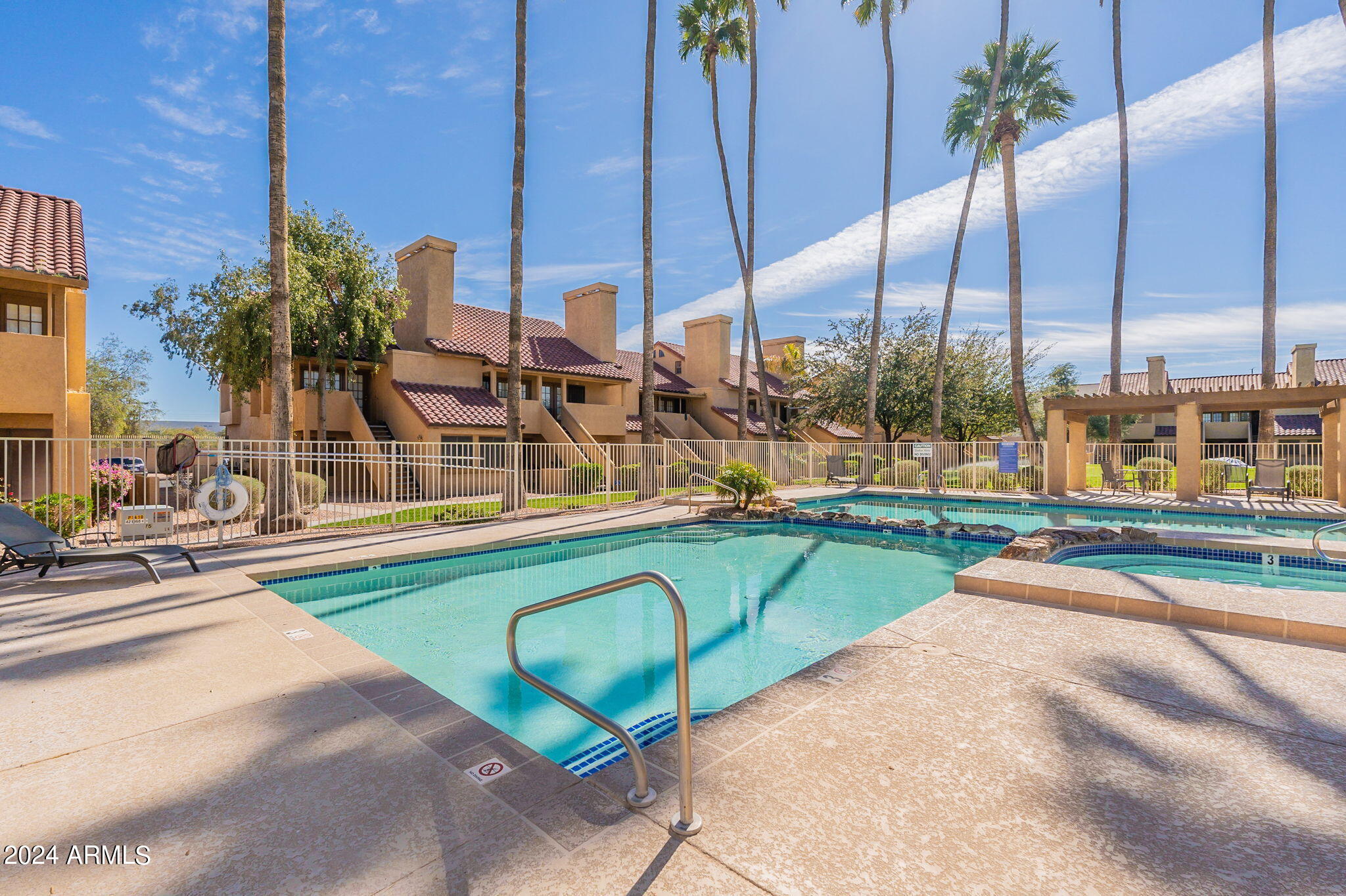 This fantastic unit showcases recently refreshed interiors with LVP floors and carpeting installed just a year ago. Cozy up by the fireplace and enjoy the convenience of a one-car garage. Each bedroom has its own sink, while a shared bathroom offers a separate toilet and shower. Outside, the common areas offer a sparkling pool and a heated spa for relaxation. Conveniently located with easy freeway access for commuting to the airport, downtown, or Tempe. Nearby shopping and dining options complete the picture of convenience and comfort.