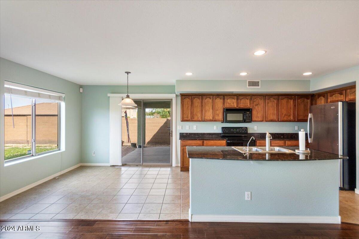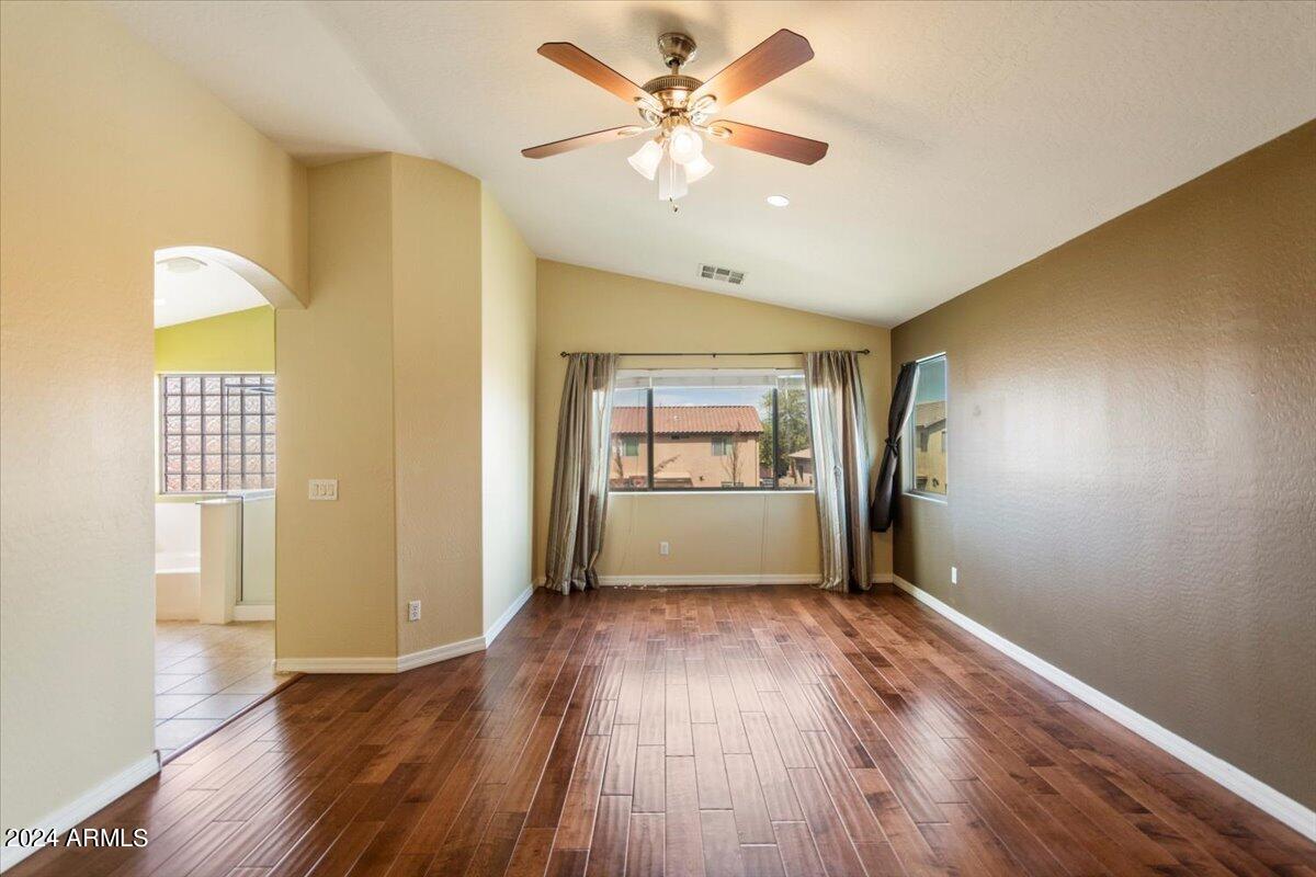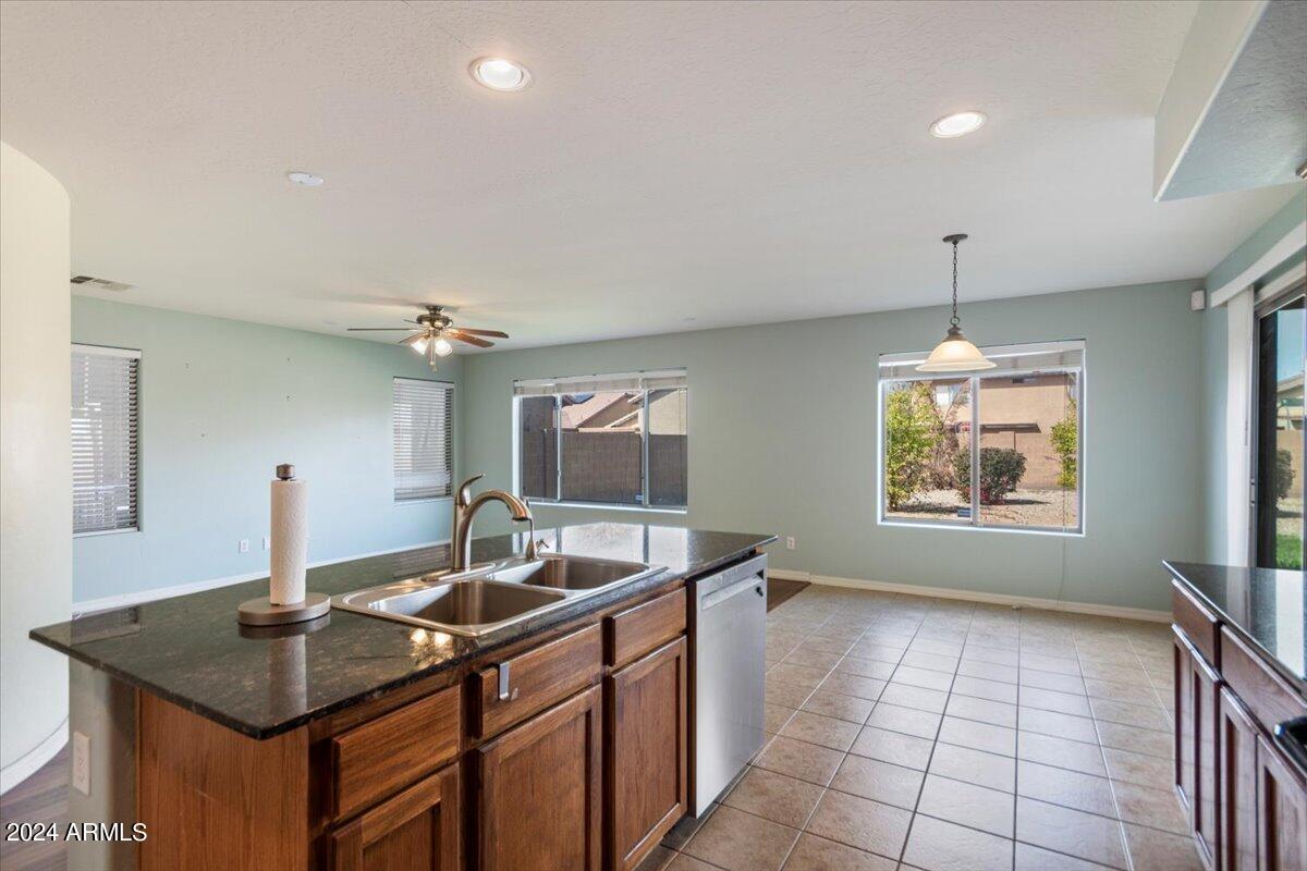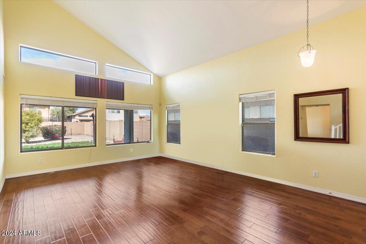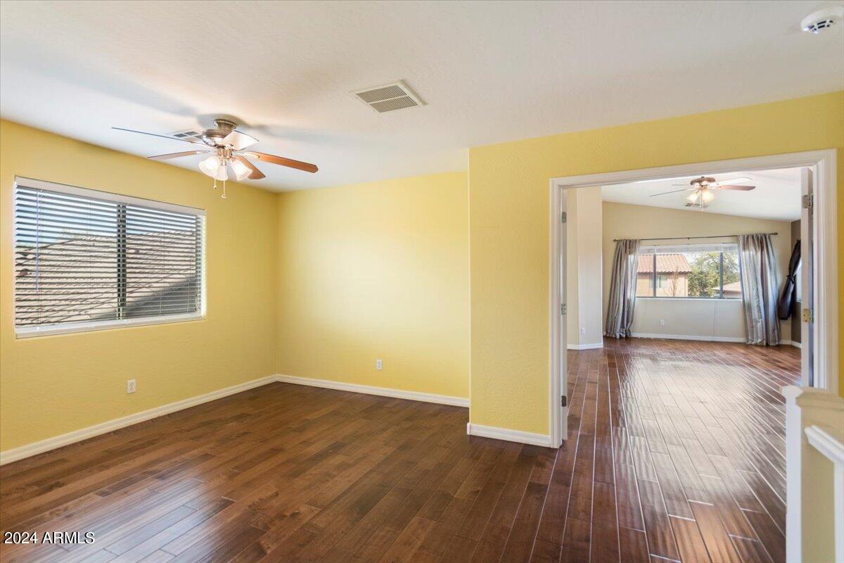 Introducing this exquisite property nestled within the prestigious Sierra Colina community, boasting a blend of modern elegance and comfort. This upgraded 4-bedroom, 3-bathroom home spans across 2,510 square feet of meticulously designed living space on a generous 7,454 square foot lot, accompanied by a convenient 2-car garage. Upon entering, you're greeted by a seamlessly flowing open floor plan adorned with tile and hardwood floors, complemented by high ceilings and Cherry cabinets that exude sophistication. The main level features a formal living room and an elegant dining space, ideal for entertaining guests. The heart of the home lies in the spacious kitchen, complete with Granite countertops, a functional island with breakfast bar seating, and a casual...CONTINUE READING.... dining area. This culinary haven seamlessly opens to the comfortable family room, creating a perfect space for relaxation and gathering with loved ones. Convenience meets luxury with a downstairs bedroom boasting a full ensuite bathroom, providing flexibility and accessibility. Ascend the stairs to discover the remaining three bedrooms and two bathrooms and a second family room/office offering ample space and privacy for the entire family. Step outside to the enchanting backyard retreat, featuring a covered patio and lush grass, along with desert landscaping, providing a serene backdrop for outdoor enjoyment and endless possibilities for customization. Experience the epitome of upscale living in this captivating Sierra Colina residence, where every detail has been thoughtfully curated for the utmost comfort and style.