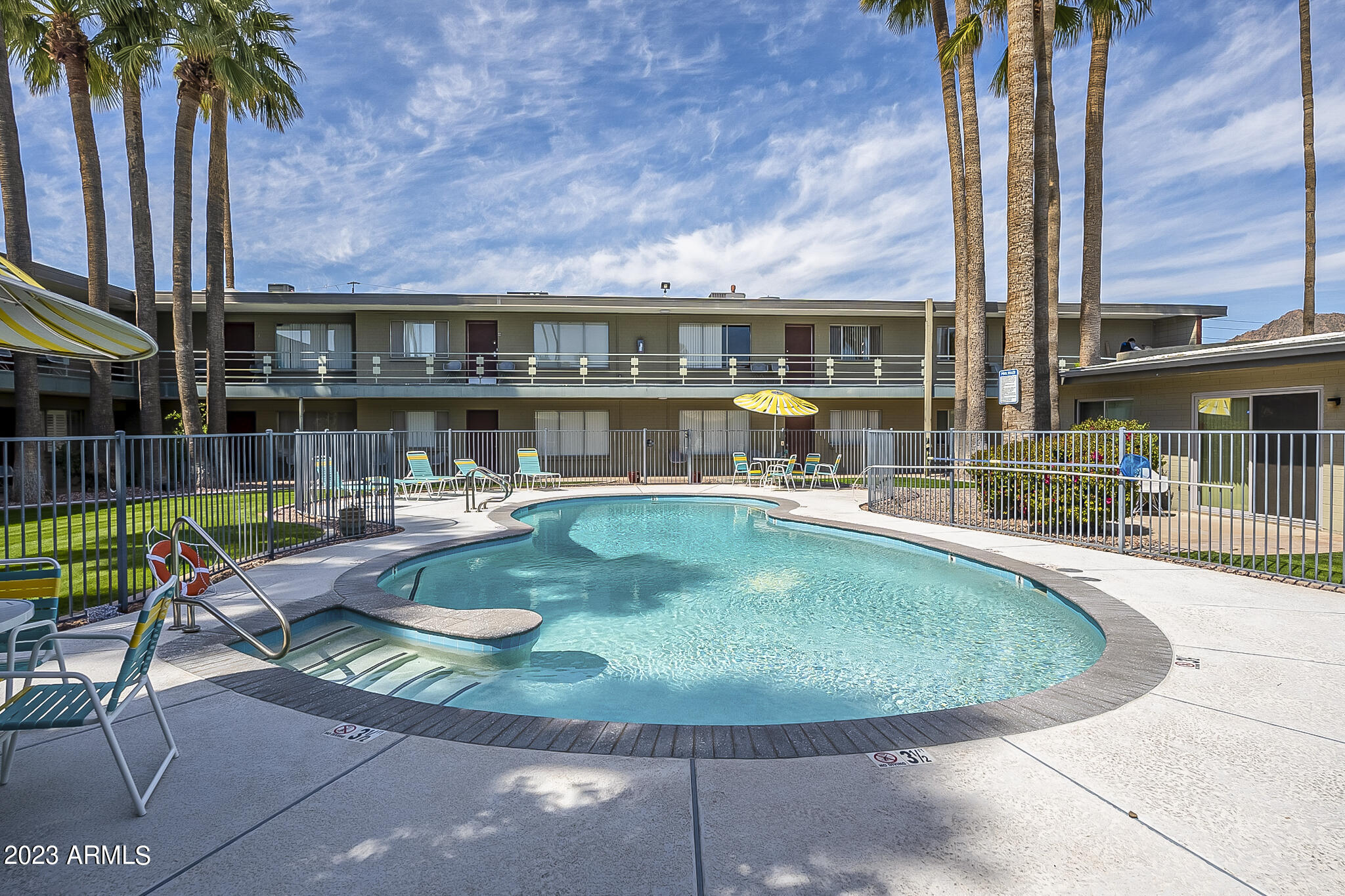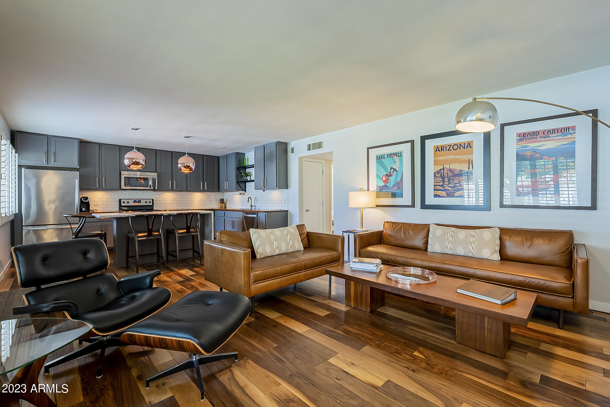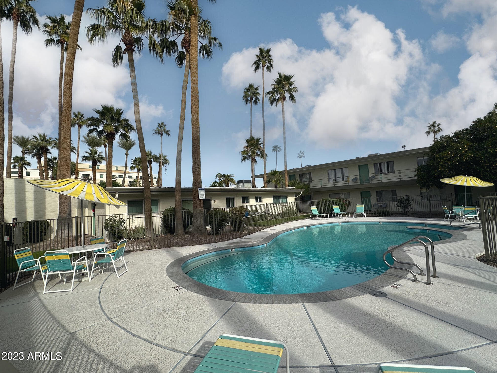 Capture the style and ambiance of Old Town Scottsdale within walking distance to shopping, nightlife ( area accessible by downtown golf cart taxis) and a plethora of galleries and restaurants. This home was built in 1950's, a mid century building and the unit has been renovated and furnished in mid century modern style. COMPLETELY Remodeled including New Cabinets, Flooring, Countertops with waterfall, tile backsplash, Stainless Steel Appliances and wonderfully decorated, with new exterior paint in the last month. This is a ground floor entry with pool view near the mailboxes and close to front entry and waterfall. HOA includes electricity, water/sewer, A/C, heat, trash, and all exterior maintenance!