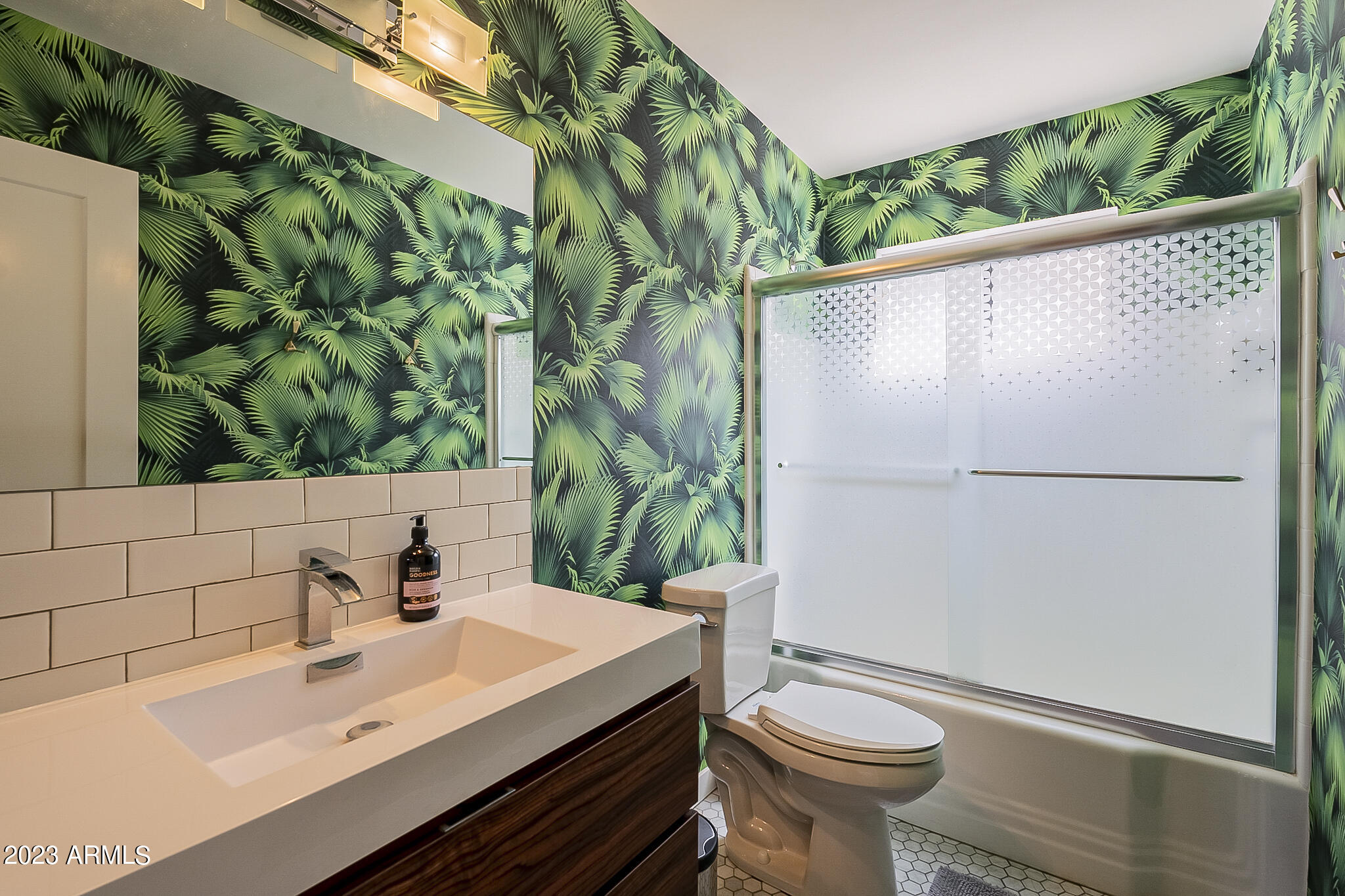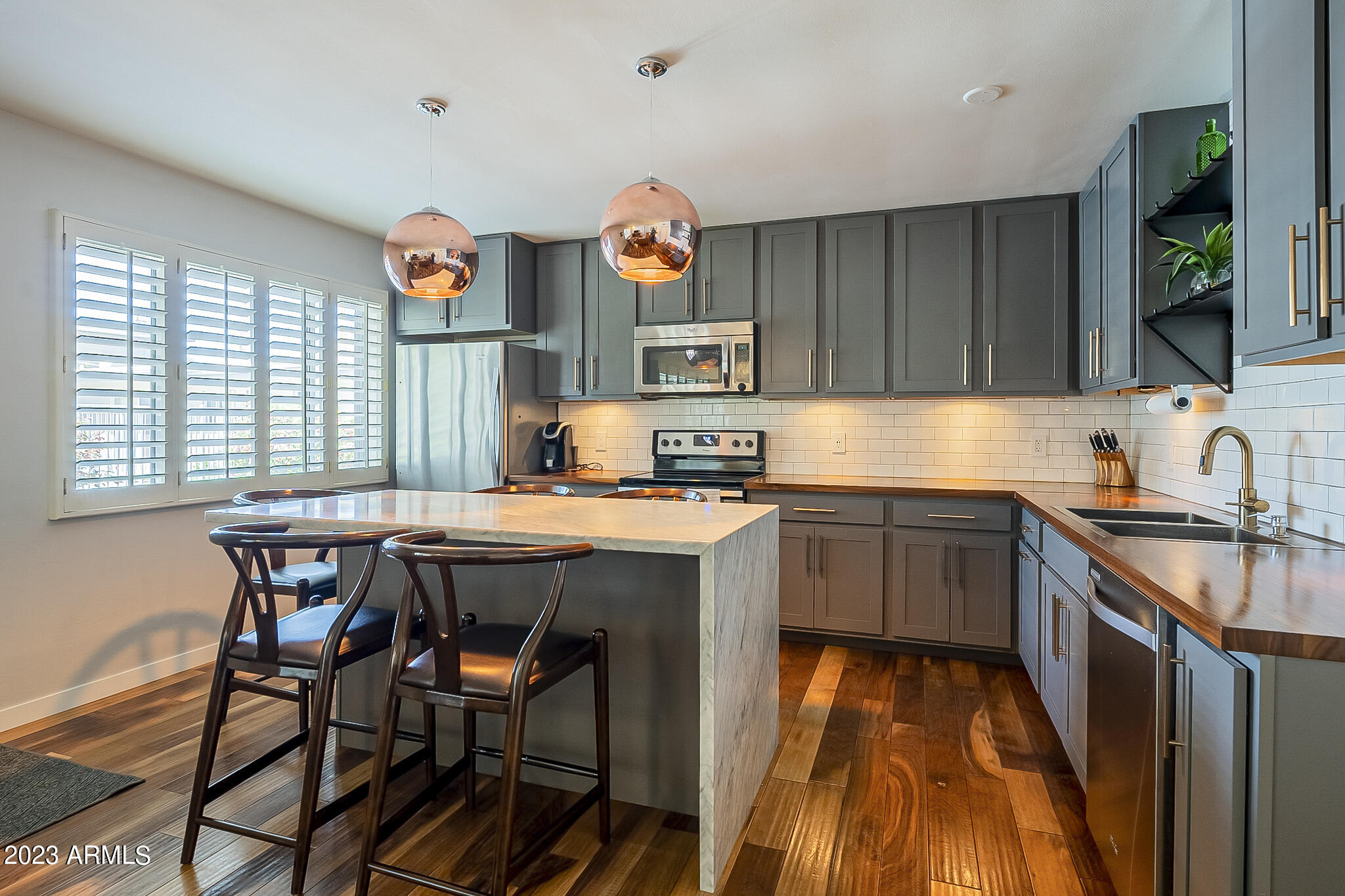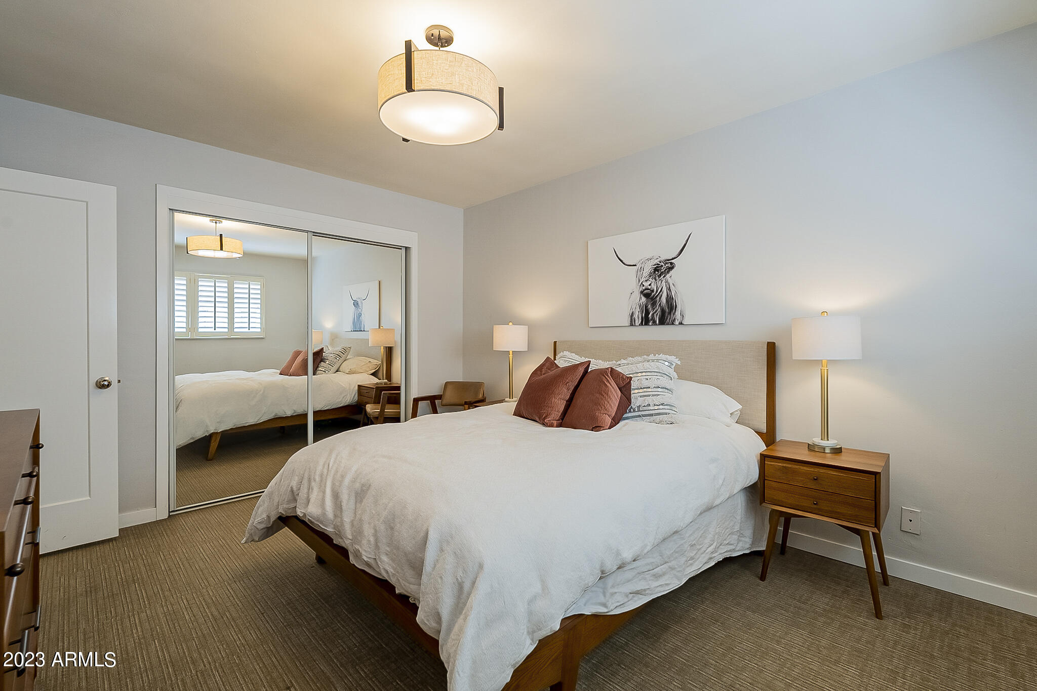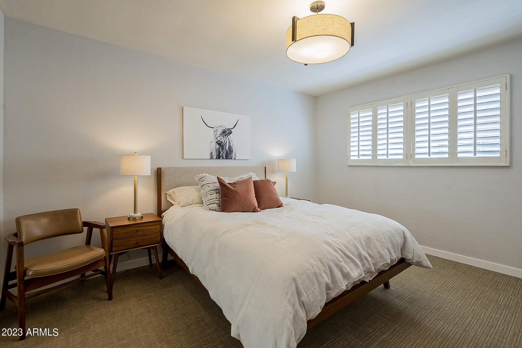 Capture the style and ambiance of Old Town Scottsdale within walking distance to shopping, nightlife ( area accessible by downtown golf cart taxis) and a plethora of galleries and restaurants. This home was built in 1950's, a mid century building and the unit has been renovated and furnished in mid century modern style. COMPLETELY Remodeled including New Cabinets, Flooring, Countertops with waterfall, tile backsplash, Stainless Steel Appliances and wonderfully decorated, with new exterior paint in the last month. This is a ground floor entry with pool view near the mailboxes and close to front entry and waterfall. HOA includes electricity, water/sewer, A/C, heat, trash, and all exterior maintenance!